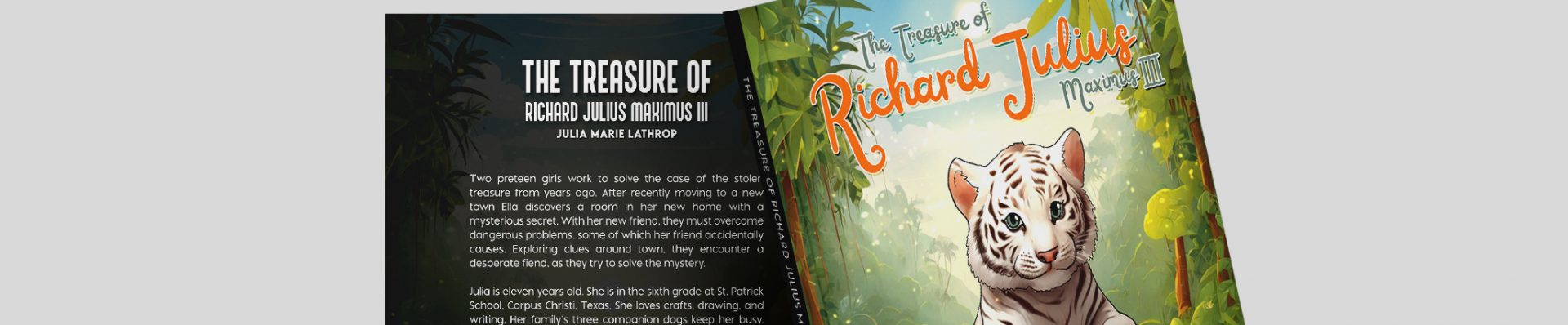 I am eleven years old, soon to be twelve. I love to write. My three dogs keep me busy, too. I enjoy stingrays, singing, and ballet lessons. Video games, reading, and baking occupy me when I have time. I try to stay busy. I have completed Jr. Lifeguard training and have studied writing at two Young Authors Camps at Texas A&M University Corpus Christi (TAMU-CC). I am a creative writer that loves to imagine new worlds and new stories, sharing my work with supportive family, friends, and teachers. I have always loved mysteries, and have prepared previously for detective work, properly getting myself ready to write a mystery story.